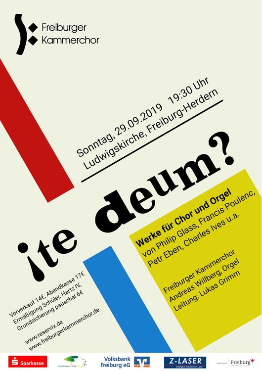 In seinem diesjährigen Herbstprogramm erkundet der Freiburger Kammerchor verschiedene Facetten des Gotteslobes. Als zentrales Werk erklingt Petr Ebens Prager Te Deum, 1989 für Chor und Orgel. Im namensgebenden Jahr in einem Moment friedlicher Revolution entstanden, orientiert sich Eben sowohl am Gregorianischen Choral als auch an barocken Vorbildern. Ein freudiges Werk, das jedoch auch tief blicken lässt in die damals ungewisse Zukunft dieser 30 Jahre zurückliegenden Umbruchszeit. Philosophische Kernfragen über das Menschsein behandelt Philip Glass in seinen Three Songs for Chorus a cappella (Texte von Leonard Cohen, Raymond Lévesque und Octavio Paz): „Wo findet unser Leben statt?“ „Wie leben wir miteinander?“ Und ganz zu Beginn: „Wie gedenken wir einander?“ Um diese letzte Frage dreht sich auch Francis Poulencs erstes geistliches Werk, die Litanies à la Vierge Noire für Frauenchor und Orgel. Als er vom Tod eines guten Freundes erfuhr, pilgerte Poulenc zur Schwarzen Madonna von Rocamadour und verarbeitete die dort erlebte „ländliche Frömmigkeit“ der Gläubigen musikalisch. Ebenso persönlich ist die Vertonung des 90. Psalms von Charles Ives, für Orgel, Chor und Glocken gesetzt, der das Konzert thematisch zusammenfasst: „Erfreue uns so viele Tage, wie du uns gebeugt hast, so viele Jahre, wie wir Unheil sahn.“